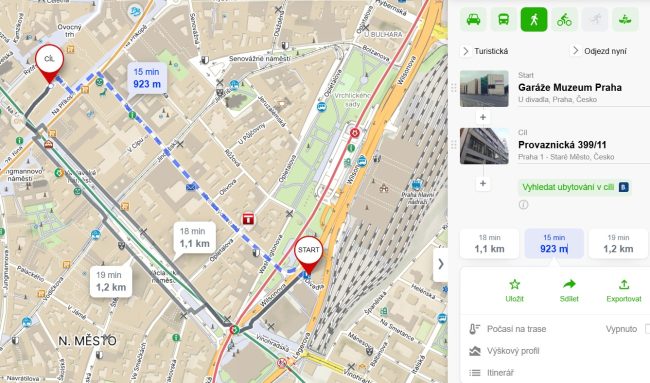 The largest parking garage in the city center is Garage Muzeum, offering nearly 500 parking spaces. The price is 800 CZK per day. Reservations are not possible in advance. The garage is less than 1 km from our apartments, which is about a 15-minute walk.