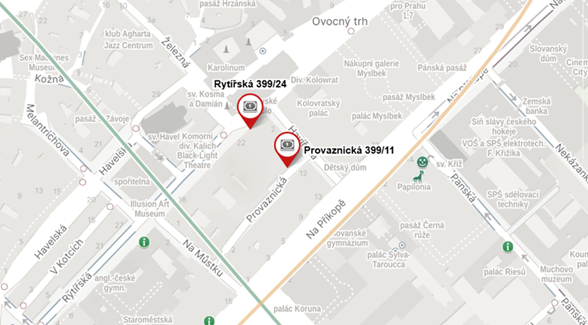 - Rytířská 399/24, Prague 1 – entrance address for apartments B31, B32, B33