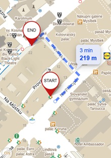 Take bus line 59 from the airport to the Veleslavín stop, which is also a station on Metro Line A. Transfer to the metro and ride to Můstek. Exit into the concourse in the direction of Můstek. From the Můstek concourse, exit onto Provaznická Street or Na Příkopě Street.
